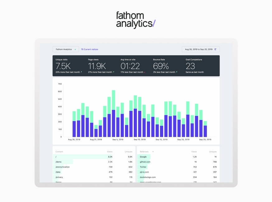 • Einhaltung des Datenschutzes: Entwickelt mit Fokus auf Datenschutz, erfasst Fathom minimalste Daten und verzichtet vollständig auf die Verfolgung persönlicher Informationen.