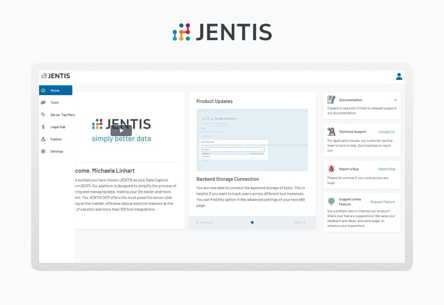 JENTIS ist eine serverseitige Tracking-Plattform, die die Datenqualität und -kontrolle verbessert. Dieser Ansatz reduziert den Datenverlust durch Adblocker und bietet eine klarere Sicht auf die Kundenreisen und integriert sich nahtlos in Marketing- und Analysetools, um optimierte Strategien zu unterstützen.