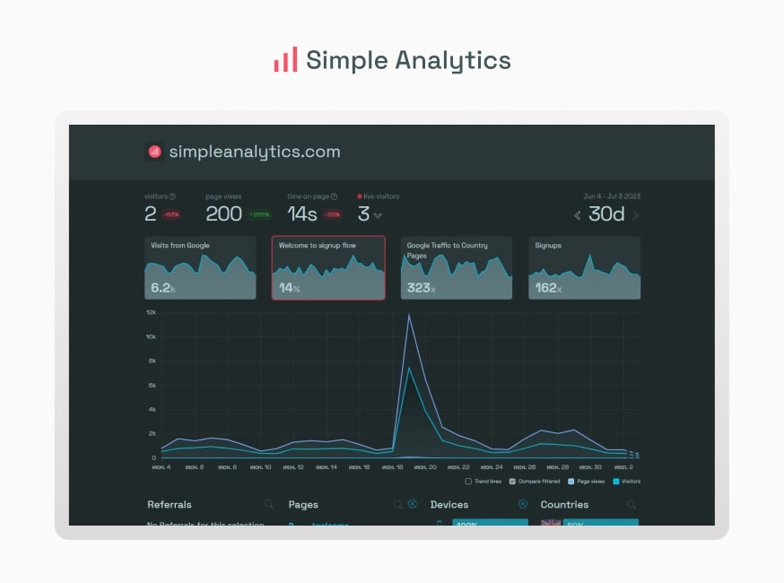 Während Simple Analytics bei der Bereitstellung grundlegender Einblicke exzellent ist, fehlen fortgeschrittene Funktionen, die anderswo zu finden sind. Dennoch bieten das retroaktive Ziel-Tracking und die einfache Zielsetzung Mehrwert für Unternehmen, die sich auf spezifische KPIs konzentrieren. Mit erschwinglichen Preisen und großzügigen Seitenaufruf-Limits für Einsteigerpläne ist Simple Analytics eine praktische Wahl für diejenigen, die Benutzerfreundlichkeit schätzen.