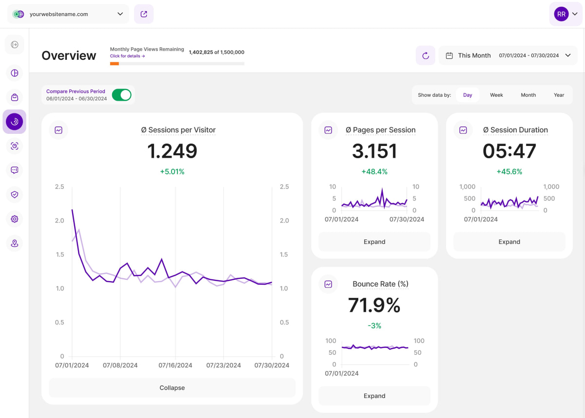 Das Modul Web-Statistik war das erste Kernmodul, das erstellt wurde. Es liefert Ihnen alle wichtigen Statistiken über Ihre Webseite und ermöglicht es Ihnen, Ihre Leistung zu bewerten und Ihre nächsten Schritte zu planen, um Ihre Webseite noch erfolgreicher zu machen.