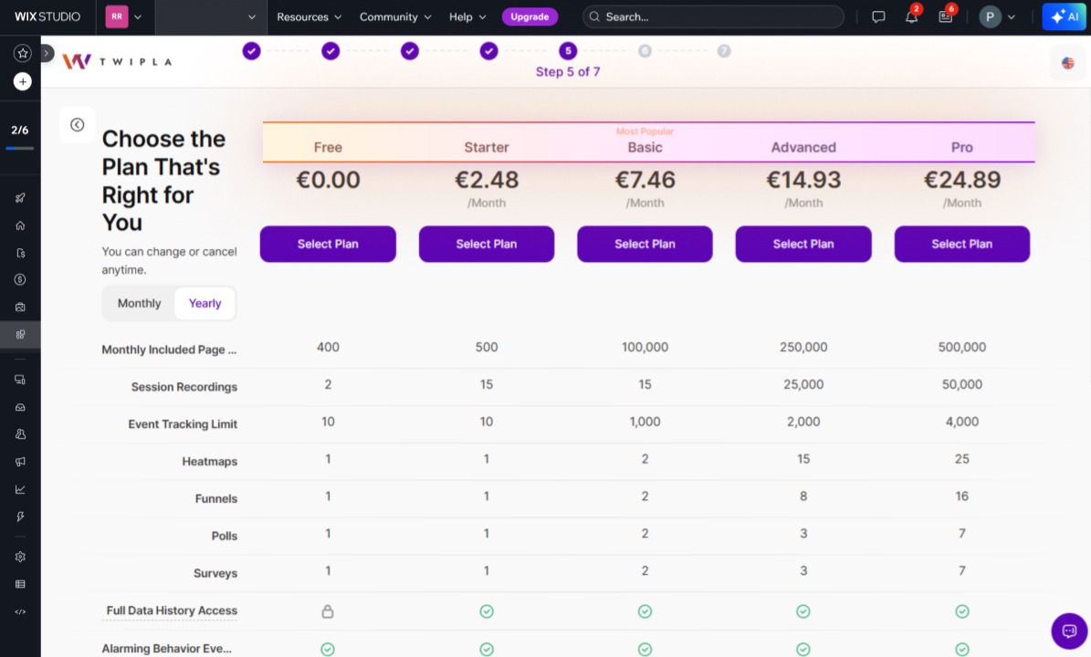 10. Wählen Sie das Paket, das Ihren Bedürfnissen am besten entspricht, basierend auf Funktionen wie monatlichen Seitenaufrufen und Sitzungsaufzeichnungen. Sie können unser kostenloses Paket wählen oder sich für unser Starterpaket für 2,99 $ pro Monat entscheiden, um umfassenden Zugang zu unserer Analyse-Suite zu erhalten.