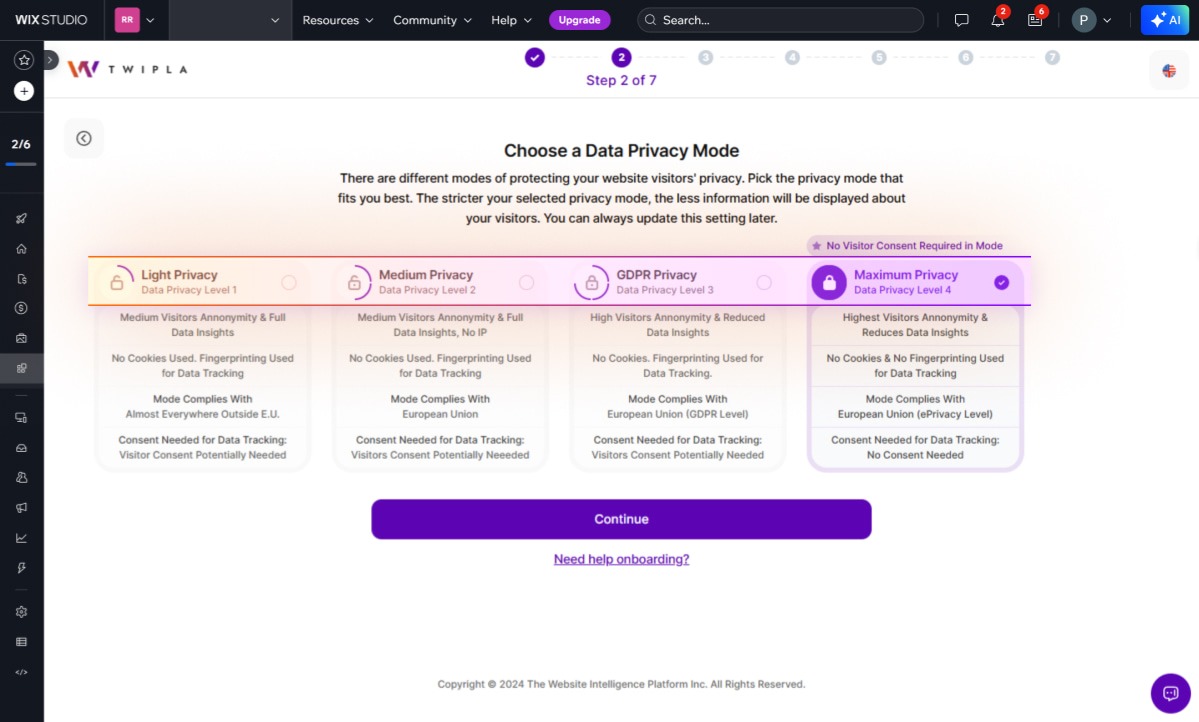 • Die Plattform kann auf die lokalen Datenschutzrechte der Webseiten-Besucher kalibriert werden, mit vier Schutzniveaus (Leicht, Mittel, DSGVO und Maximaler Datenschutz). Mit dem standardmäßigen leichten Schutzmodus erfüllen Sie die Vorschriften der meisten Regionen außerhalb der EU (je nach Ihrem Standort oder dem Ihrer Besucher).