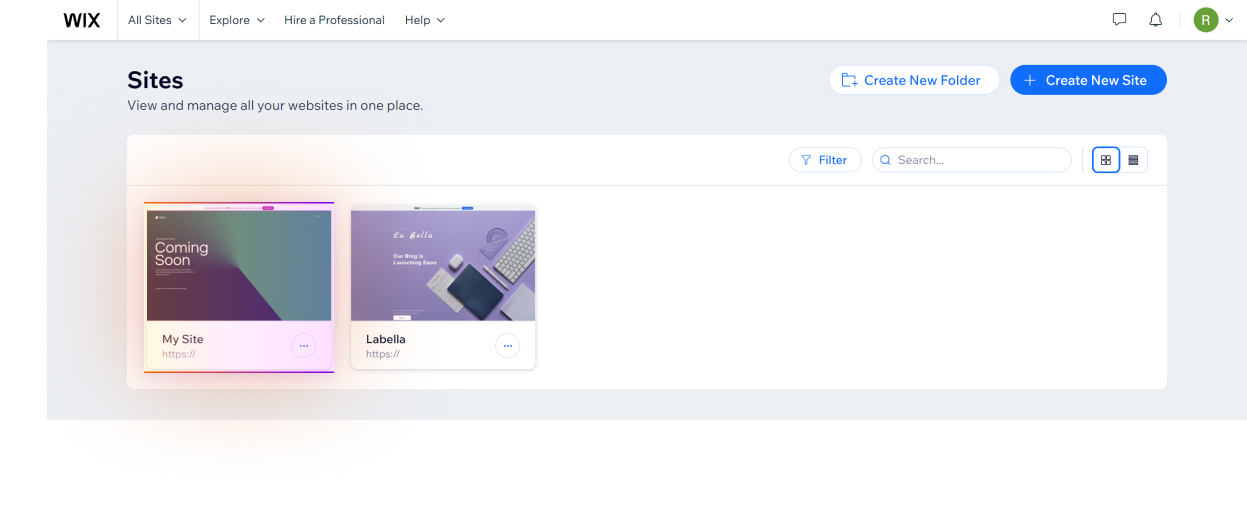 1. Navigieren Sie in Ihrem Wix-Konto zum Menüpunkt Websites um die Liste Ihrer Websites anzuzeigen und die Website auszuwählen, auf der Sie unsere App installieren möchten.