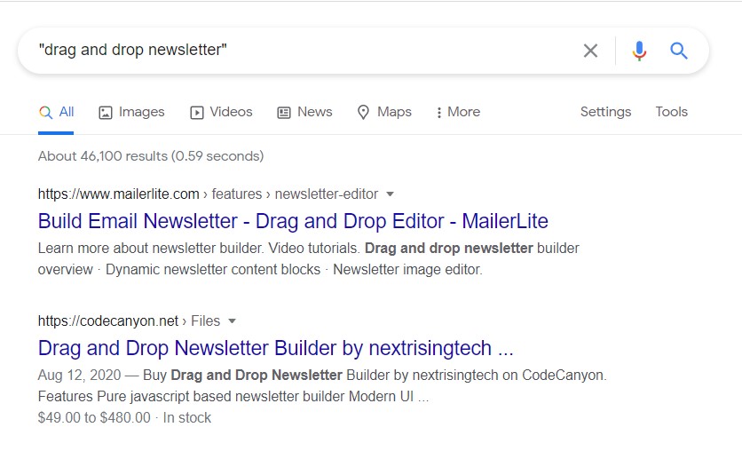 Let’s say you are looking for tools and recommendations on how to create a newsletter using a drag and drop builder.