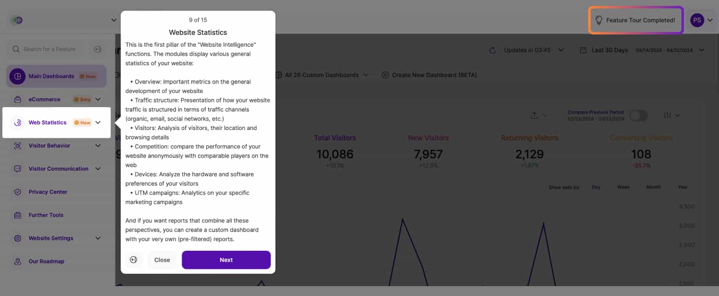 Provide our complete analytics suite to your clients, directly within your own interface and with your/their own branding. Discover Analytics-as-a-Service and White Label Analytics. Great benefit, minimal effort.