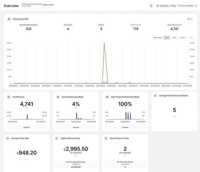Track key performance indicators, customer purchases, and detailed sales data for your webstore.