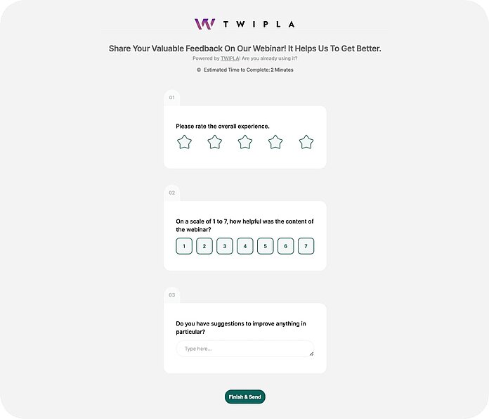 So create a survey in just seconds. Additionally, choose whether to show questions all at once or one at a time. You can also add a progress bar to let participants know how many questions remain, and redirect them to a page of your choice after they finish.