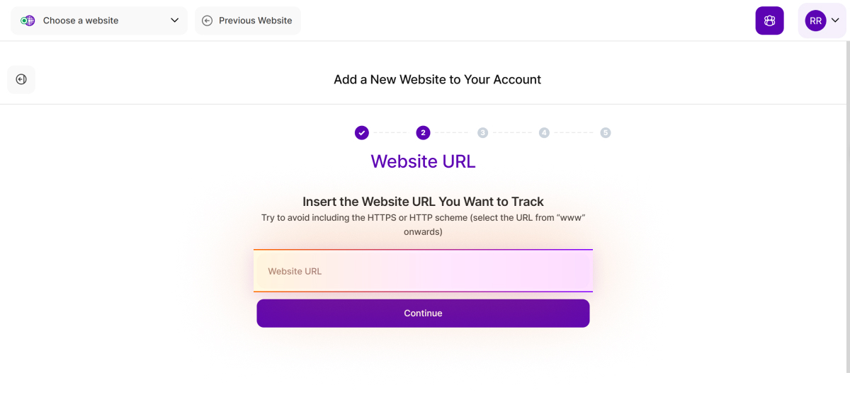 Select the [No, I Don't Use Any Platform From Above] option and paste in your website homepage URL.