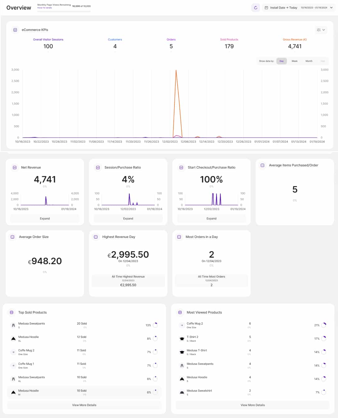 Note: eCommerce Statistics is part of a wider website intelligence toolkit. This means users will be getting reports on store performance away from interactions related to product sales, basket activity, and the full checkout process from the moment they've installed the tracking code.