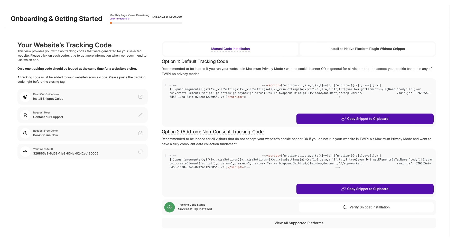 This means opening an account and installing the tracking code that fuels it with website data. We also advise that you set the privacy level so that data collection happens within your legal data threshold and that the account is set to the right currency in Module Settings.