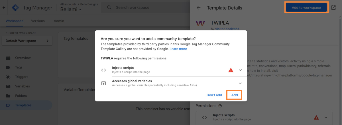 Support for Installation and Using TWIPLA via Google Tag Manager