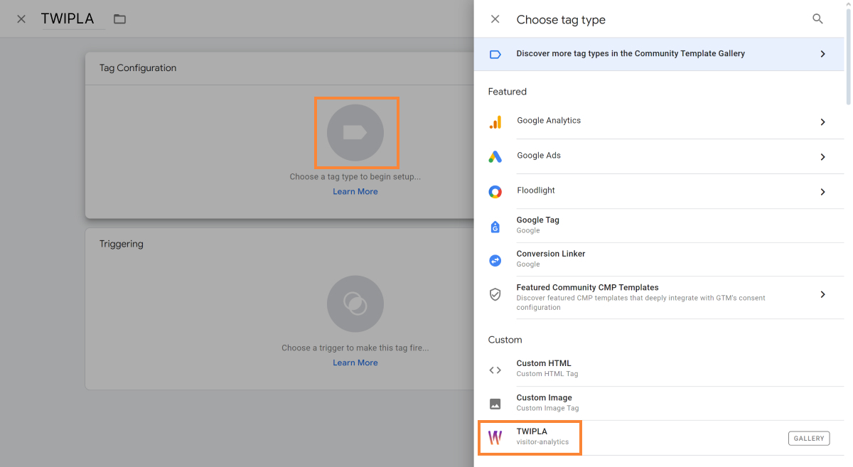For a detailed step-by-step guide on how to easily install TWIPLA via Google Tag Manager, go to your Tag Manager account and refer to the installation guide listed below: