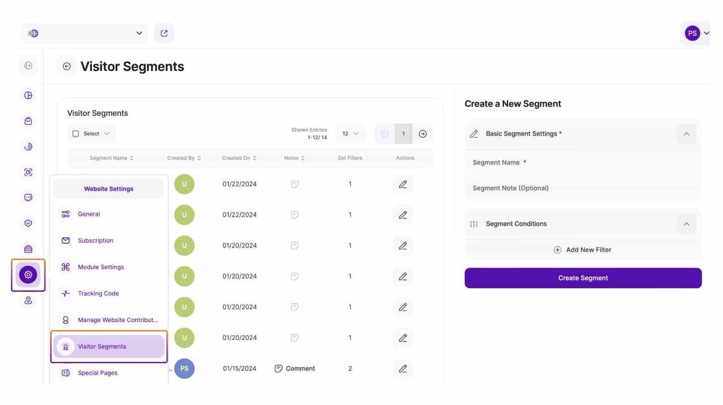 - Crearea unui segment de vizitatori