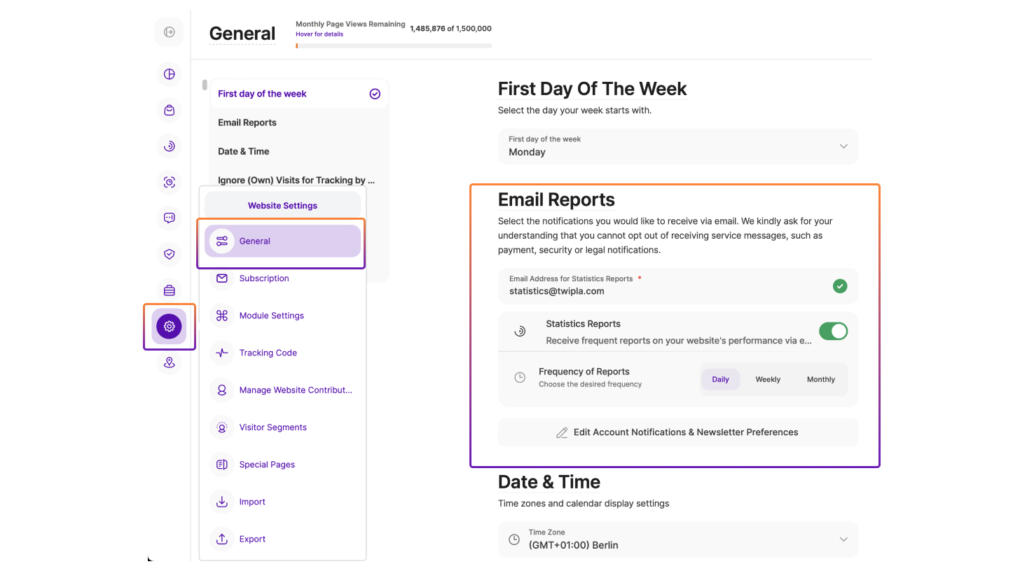 Această etapă de onbording vă permite să decideți ce notificări prin e-mail doriți să primiți de la platforma de analiză și de la furnizor, de asemenea asigură consimțământul de acceptare de care avem nevoie pentru contactul prin e-mail. Deși opționale, rapoartele de statistică trimise în mod regulat prin e-mail reprezintă un ajutor neprețuit pentru mulți dintre utilizatorii noștri oferindu-le informații despre site-ul web. Puteți dezactiva aceste e-mailuri aici sau le puteți limita frecvența.