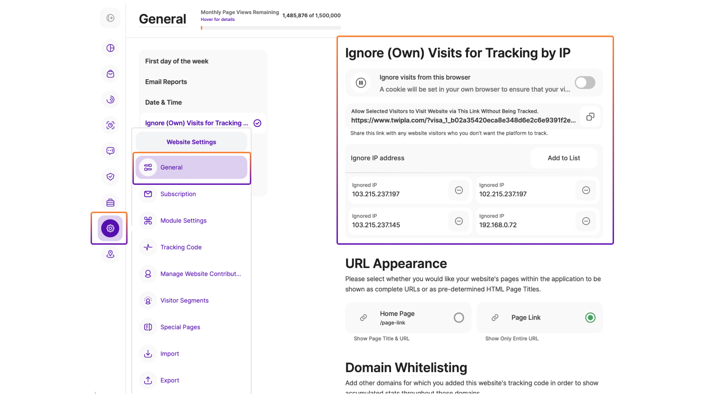 - Dezactivarea urmăririi pentru propriile vizite