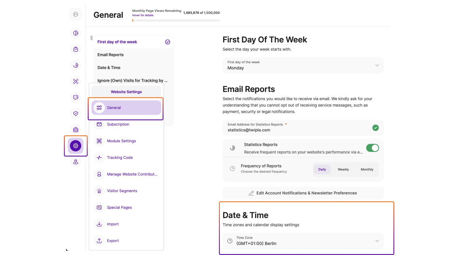 Setul de instrumente pentru inteligența site-ului este setat implicit pe limba engleză, dar poate fi setat rapid și în altă limbă. Și, deși lucrăm în mod regulat la traducerea platformei în mai multe limbi, în prezent este disponibilă doar în cele mai vorbite limbi europene. Acestea sunt franceza, germana, italiana, portugheza, româna și spaniola.