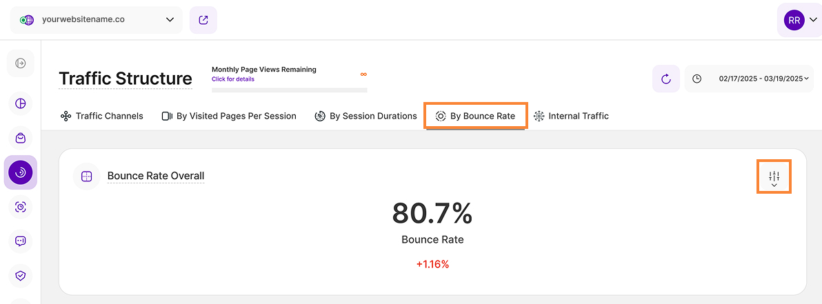 Sfat important: O scădere a procentului ratei de respingere indică o îmbunătățire a performanței site-ului dvs. web.