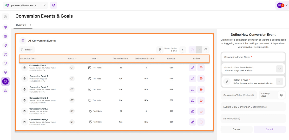 Aveți flexibilitatea de a edita sau șterge orice segment de vizitator existent, după cum este necesar. Acest lucru vă permite să ajustați criteriile și denumirea segmentului pentru a se alinia cu cerințele dvs. de analiză.