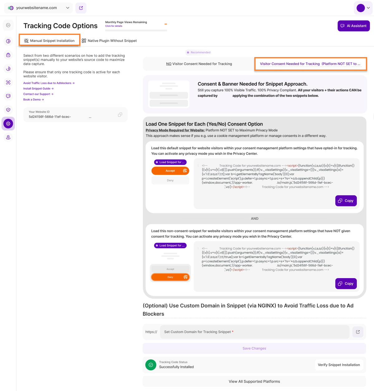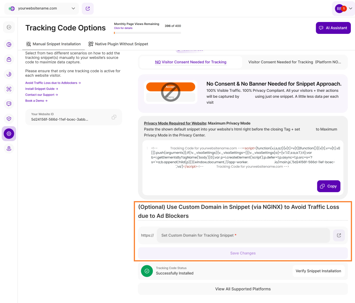 - (Opțional) Utilizați domeniul personalizat în snippet (prin NGINX) pentru a evita pierderea traficului din cauza adblockerelor